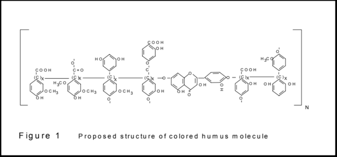 Tannins are usually found in surface water supplies and shallow wells, and can vary widely depending on the geographic. They are present in water that comes in contact with partially decomposed plants. The most common types are tannic acid(from wood and tree bark) and humic acid (from leaves). Tannins tend to be yellowish or straw colored, while humic acid tends to be brown to black in color. Humic substances can form complexes with iron; when iron is complexed with the organic, it is referred to as"heme" iron or organic iron